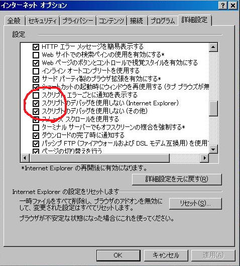 スクリプトのデバッグをしないという項目あたりに問題があるかもしれません。